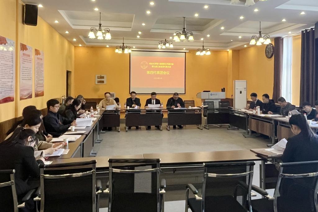 校工会主席何世新代表第八届工会委员会作工会工作报告。财务处处长杨众晖作学校2023年度财务决算及2024年度财务预算工作报告。