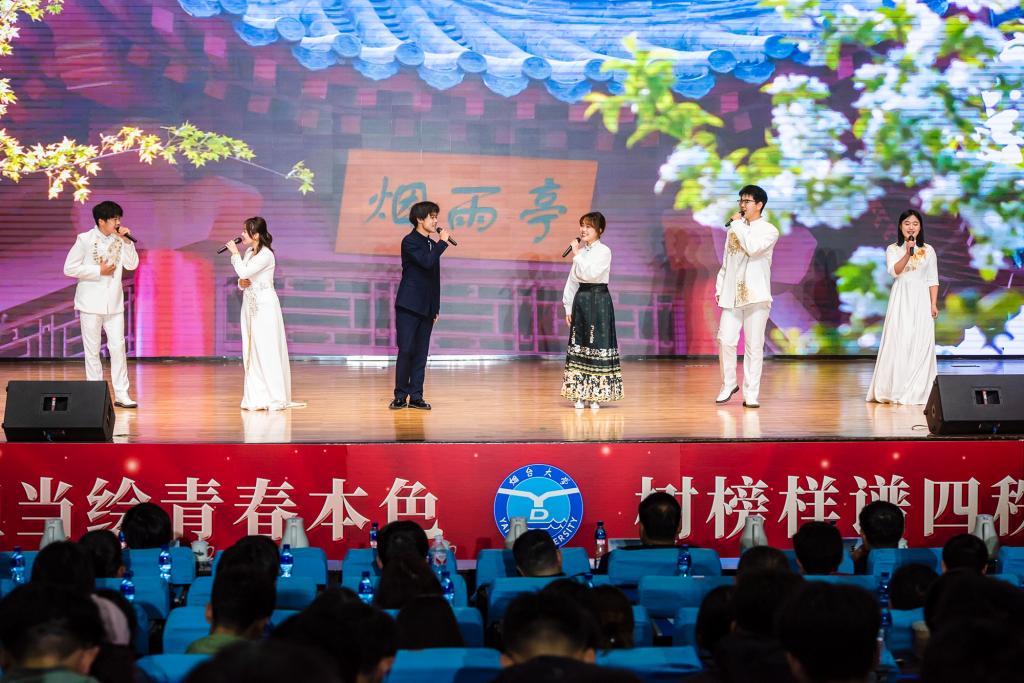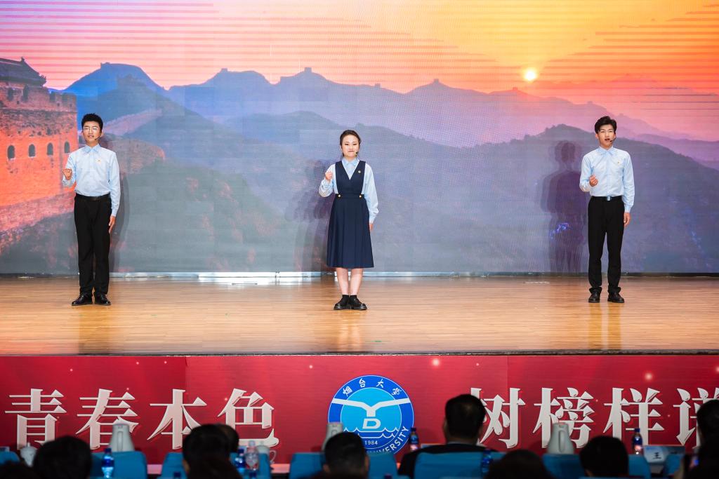 颁奖典礼中还精心编排了兼具思政味、青年味的校园文艺作品,充分展现了sunbet申搏青年学子自信阳光的青春风貌。闪亮的团徽映衬着奋斗的青春,火红的团旗闪耀着坚实的足迹。讲述节目《青春飞young》中,青春榜样文学与新闻传播学院万锦涛、sunbet申搏官方网站“热血胶东•红色育人”大学生宣讲团代表刘振兴、第十八届“挑战杯”竟赛国赛特等奖——朝夕拾遗团队代表王晓迪、机电汽车工程学院辅导员牟城健用他们的故事让在场师生看到了“有理想、敢担当、能吃苦、肯奋斗”的青年模样。