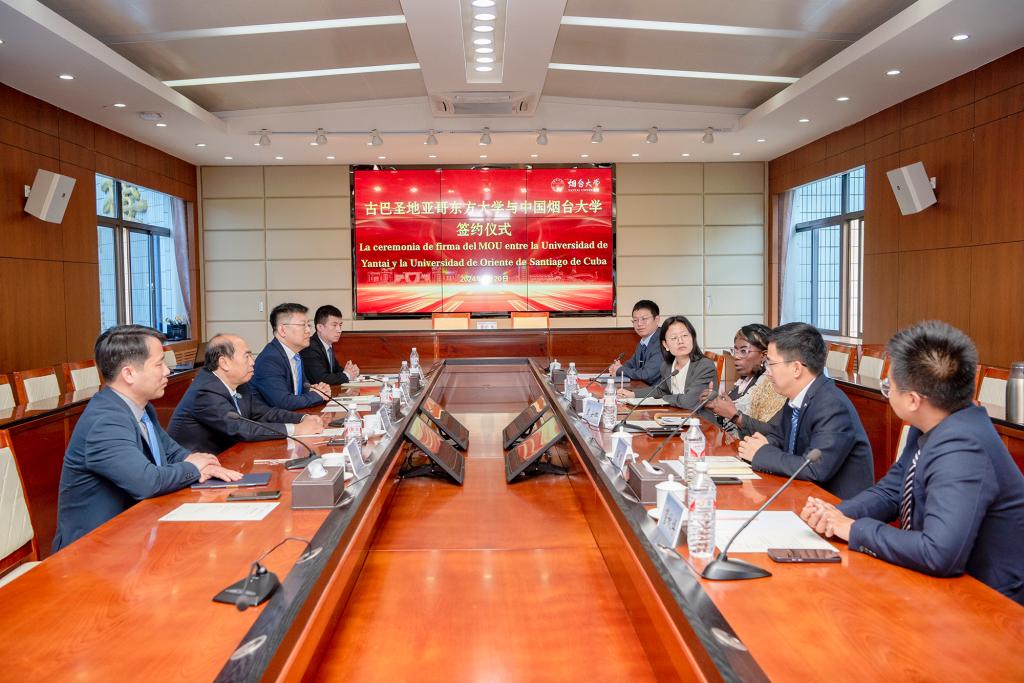 郝曙光对戴安娜·塞达尔·亚内斯一行表示热烈欢迎,并详细介绍了学校的发展历程、地域环境以及国际合作交流情况。他表示,此次合作是学校首次与来自古巴的高校开展互动交流,希望两校以此为契机,在孔子学院建设、学生交流交换、假期研修等方面开展紧密合作,进一步拓展国际合作半径,推动两校乃至两国交流。