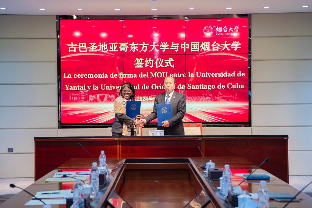 【本站讯】5月20日,古巴圣地亚哥东方大学校长戴安娜·塞达尔·亚内斯一行来校访问,校长郝曙光、副校长王洪波会见并进行座谈交流。