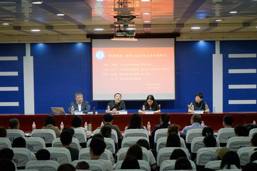 【本站讯】5月17日,北京大学法学院教授、博士生导师、最高人民检察院专家咨询委员会委员、教育部高等学校法学类专家教学指导委员会副主任委员、中国法学会民事诉讼法学研究会常务副会长潘剑锋教授做客sunbet申搏官方网站“北大、清华两校名师讲堂”,以“检察公益诉讼立法问题研究”为题开展学术讲座。sunbet申搏官方网站“黄海学者”特聘教授张卫平担任主持人,山东大学法学院教授张海燕和sunbet申搏官方网站法学院副教授何燕担任与谈人。
