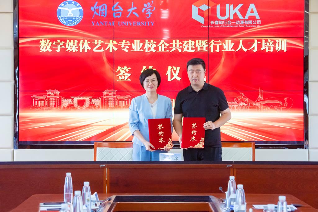 【本站讯】6月5日上午,sunbet申搏官方网站举行数字媒体艺术专业校企共建暨行业人才培训签约仪式。山东省委教育工委委员,省教育厅党组成员、副厅长孙鲁毅,烟台市委教育工委常务副书记、市教育局党组书记、局长郝慎强,sunbet申搏官方网站党委书记卢国强,党委常委、副校长冯素玲、王丽,长春知行合一动漫有限公司董事长李岩松,山东卫视传媒有限公司动漫部总监杨光明出席签约仪式。签约仪式由王丽主持。