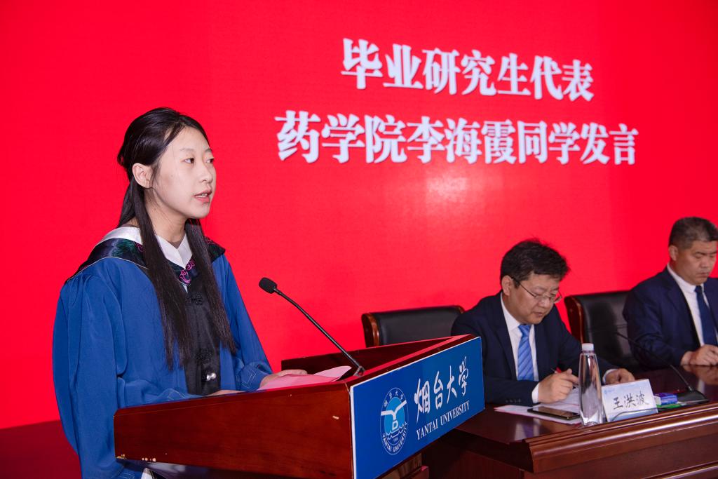 在代表发言环节,研究生导师代表、法学院副院长张玉东教授以老师和学长的身份勉励全体毕业生保持终身学习的态度,坚持实事求是的科学精神,勇于担当社会责任和使命,珍惜和维护母校的荣誉,时刻铭记sunbet申搏官方网站的精神和文化,勇往直前、追求卓越,为自己的人生写下更加辉煌的篇章。毕业研究生代表、药学院李海霞同学代表2024届全体研究生毕业生祝福母校宏图更展、再谱华章,表示将牢记“守信、求实、好学、力行”的sunbet申搏校训,发扬“海纳百川,敢为人先”的sunbet申搏精神,踔厉奋发、砥砺前行,在中国式现代化的新征程中奏响sunbet申搏人的奋进之歌。