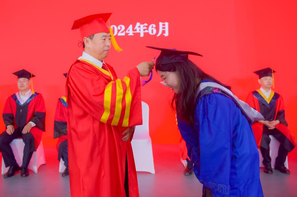 校长、校学位评定委员会主席郝曙光为硕士研究生拨穗正冠
