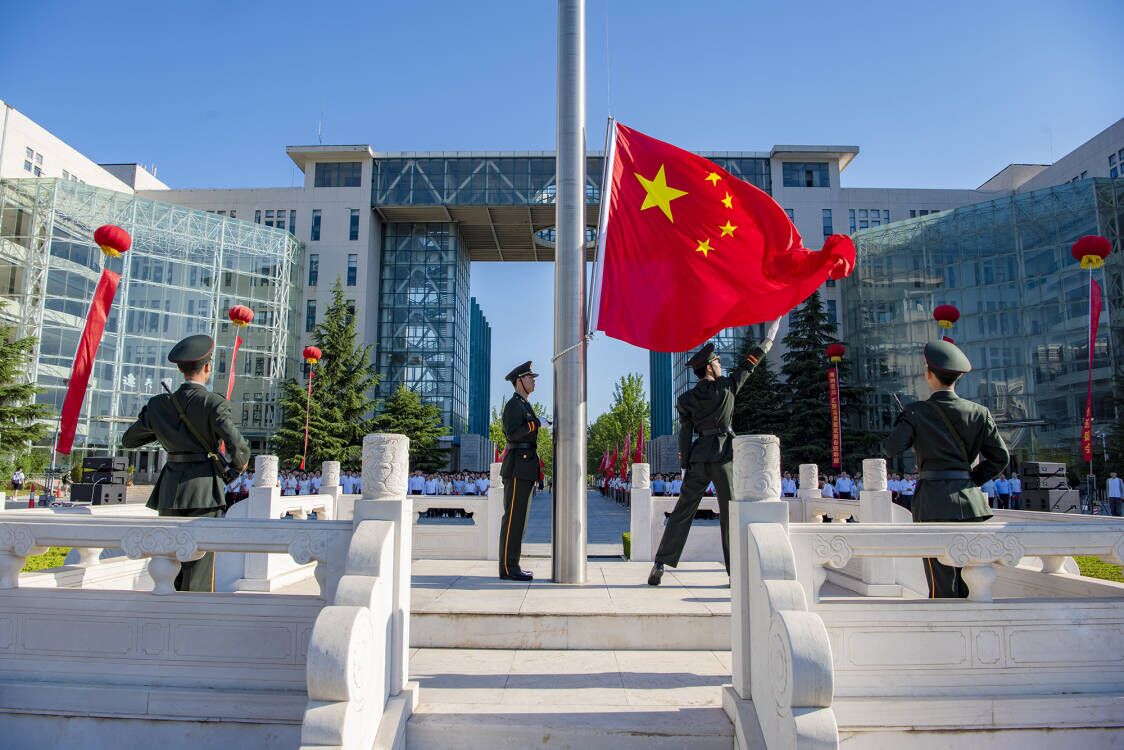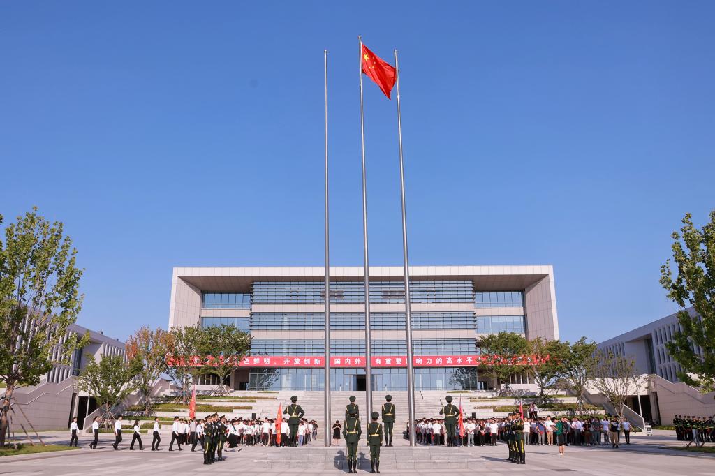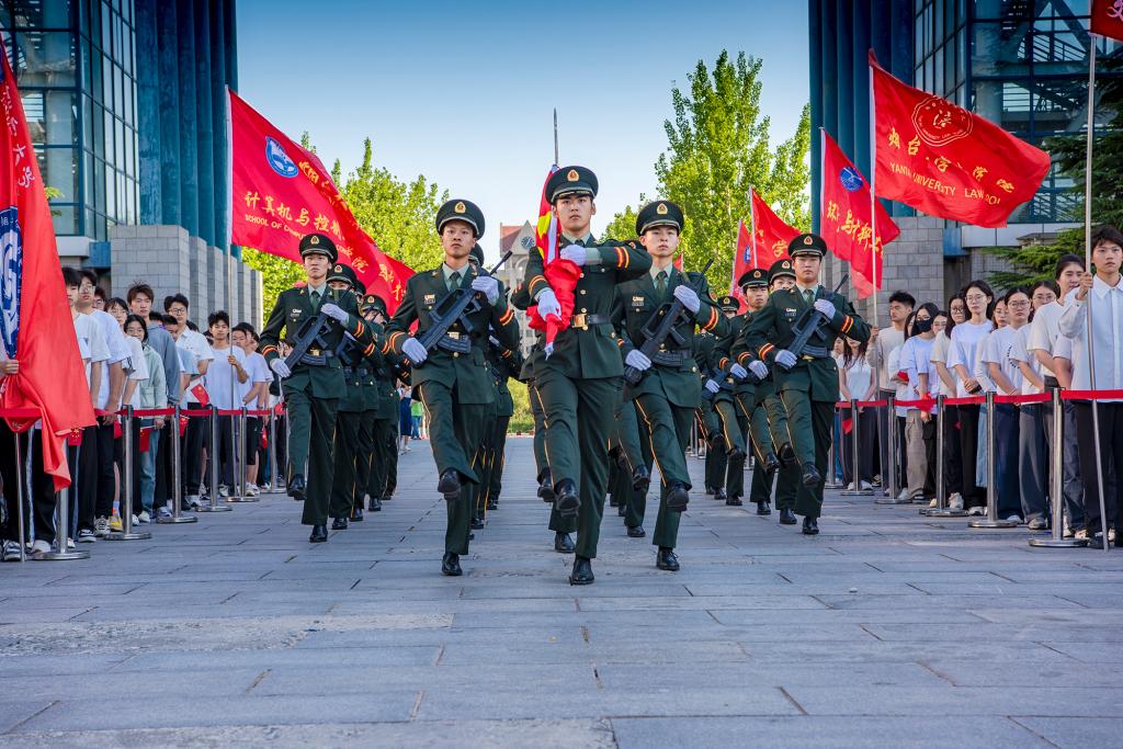 熠熠强国志闪耀未来。“五星红旗迎风飘扬,胜利歌声多么响亮,歌唱我们亲爱的祖国,从今走向繁荣富强……”在全场师生合唱《歌唱祖国》中,升旗仪式进入尾声。声声颂歌响彻烟园,激励堪当重任、大有希望的青年一代坚定强国志向,紧握奋斗之桨,高扬实干之帆。