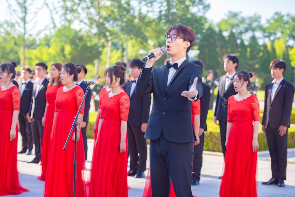 殷殷报国情源远流长。音乐舞蹈学院海之韵合唱团带来歌曲《领航》。“人民就是江山,写就使命担当,为了人民幸福,为了复兴理想,风雨兼程不可阻挡,伟大的中国共产党,风华正茂、山高水长……”歌声澎湃,振奋人心,一路走来,无数优秀中华儿女在中国共产党领导下,在爱国主义旗帜感召下,追赶时代、超越自我、开创未来。