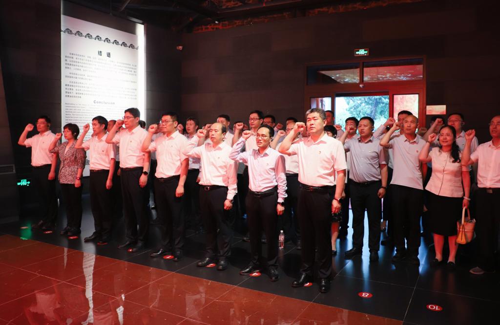 参观最后,全体人员在鲜红的党旗前举起右拳,重温入党誓词,铿锵有力的宣誓声久久回荡。大家纷纷表示,要进一步筑牢马克思主义信仰之基、进一步锤炼对党绝对忠诚的政治品格、进一步坚定加快建成高水平大学的信心,将学习成效转化为立德树人、担当作为、干事创业的强大精神动力,紧紧围绕学校第五次党代会确定的“一五八一”总体部署,勇担使命、奋楫争先,为加快建成特色鲜明、开放创新、国内外具有重要影响力的高水平大学而团结奋斗。
