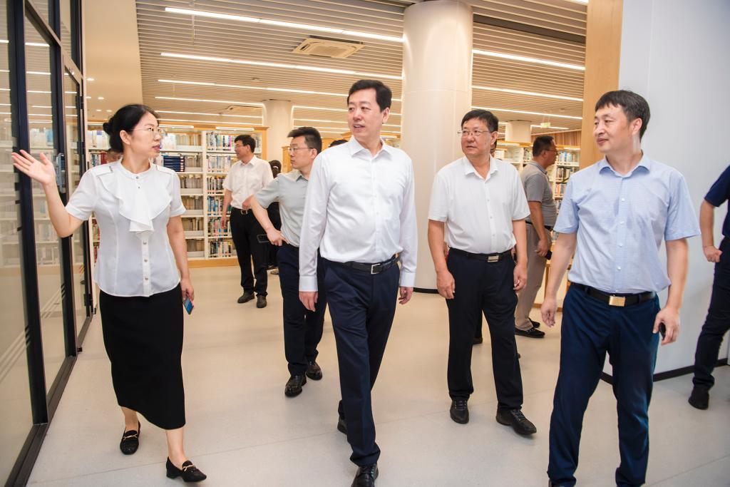 烟台八角湾新城推进服务中心,党委(学校)办公室、科教园区管理办公室、图书馆、网络安全与信息化中心、化学化工学院、生命科学学院负责人陪同调研。