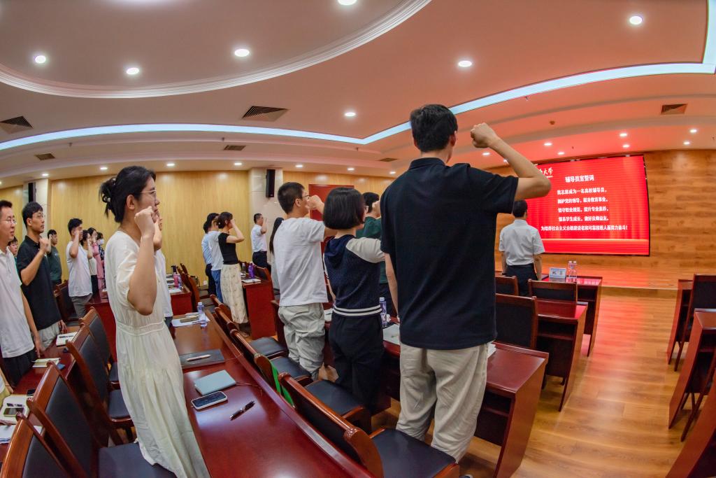 姚昌在讲话中向辛勤付出的辅导员老师表示衷心感谢,向新加入辅导员队伍的老师表示热烈欢迎。他指出,辅导员是学生成长成才的人生导师和知心朋友,学校一直高度重视辅导员队伍建设,出台了队伍建设相关制度文件,搭建了一系列发展平台。希望辅导员老师不忘初心、牢记使命,牢固树立以学生成长为中心的理念,围绕学生、关照学生、服务学生,在服务学生成长成才中彰显价值;希望辅导员老师守正创新、与时俱进,结合高质量发展新态势、育人工作新要求、学生成长新特点,与时俱进、敢于创新,不断丰富教育方式、优化工作机制、改进工作方法,不断取得学生工作新成效,在服务学校事业发展大局中找准定位;希望辅导员老师坚持学习、加压奋进,主动修炼铸魂育人的政治担当、履职尽责的育人本领、新质思政的工作能力,做到“政治过硬、业务过硬、作风过硬”,在持续学习实践中实现个人成长。