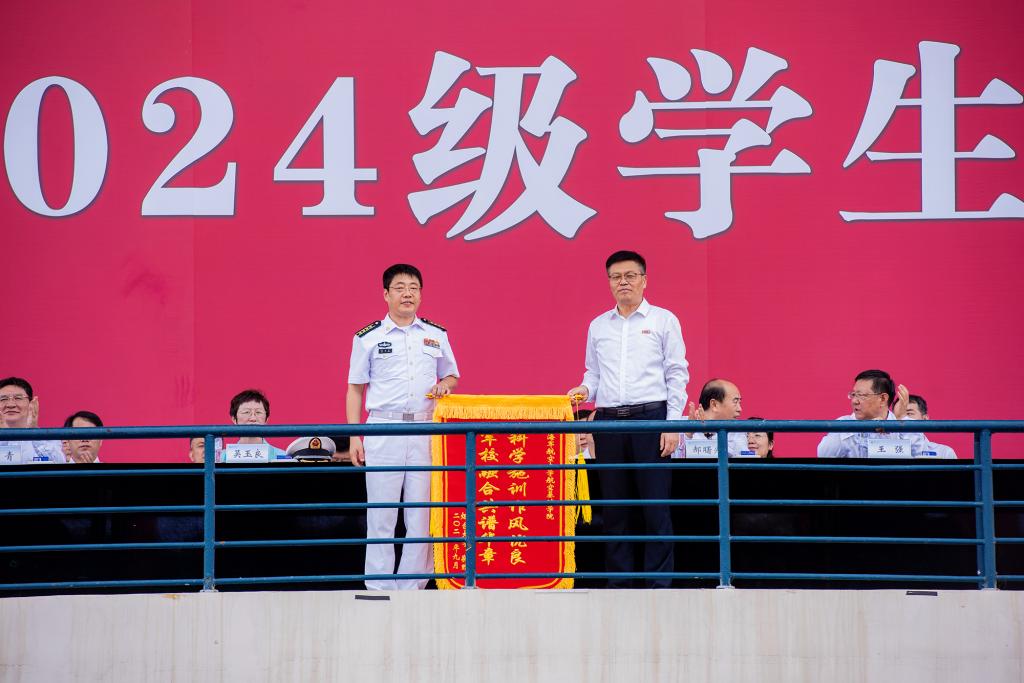 展示结束后,卢国强代表学校向海军航空大学赠送锦旗。