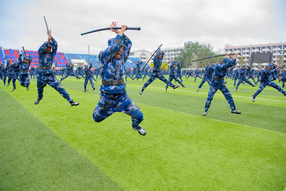开学典礼在雄壮的国歌声中拉开序幕。“听吧,新征程号角吹响!”看台上,一千五百余名新生热血唱响《强军战歌》,铿锵的旋律与激昂的歌声交织奏响sunbet申搏学子的青春强音。绿茵场上,应急棍术表演和女子匕首操表演轮番上场,一招一式坚定有力,挥臂踢腿英姿飒爽,嘹亮口号响彻不断,生生不息的青春活力将全场气氛瞬间点燃。