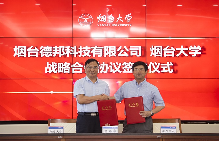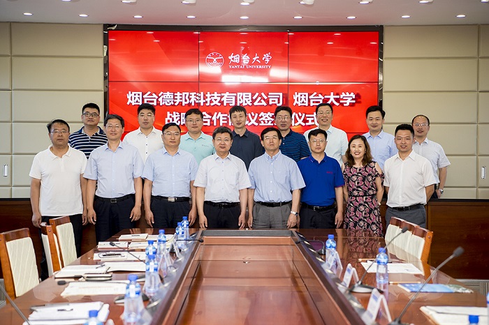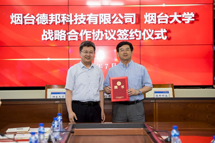 党委书记张伟简要回顾了学校的创建历程,介绍了建校35年来学校在人才培养、科学研究、师资队伍建设、学科平台建设、服务地方等方面取得的成果。张伟指出,学校始终不忘服务区域经济社会发展的初心,第四次党代会确定了“立足烟台、融入烟台、服务烟台”的发展理念,将持续提升服务地方工作水平作为支撑高水平大学建设的发展战略。与烟台德邦科技有限公司战略合作框架协议的签署是双方资源共享、共谋发展的又一举措,对学校、企业的发展具有重要意义。张伟诚挚地希望双方进一步加强沟通,精诚合作,充分挖掘并发挥各自的优势与特色,扎实推进资源整合,全面推动人才培养、项目合作、成果转化和科研平台共建。