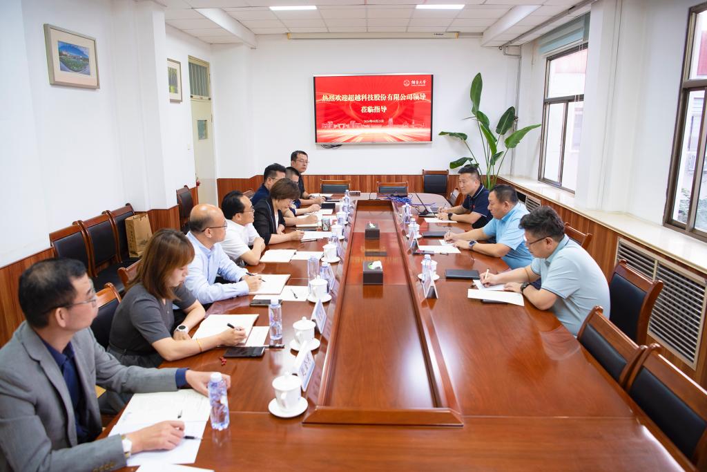 【本站讯】9月25日,超越科技股份有限公司总经理房伟一行来校交流,党委副书记、校长郝曙光,党委常委、副校长冯素玲、姚昌、王丽出席活动。