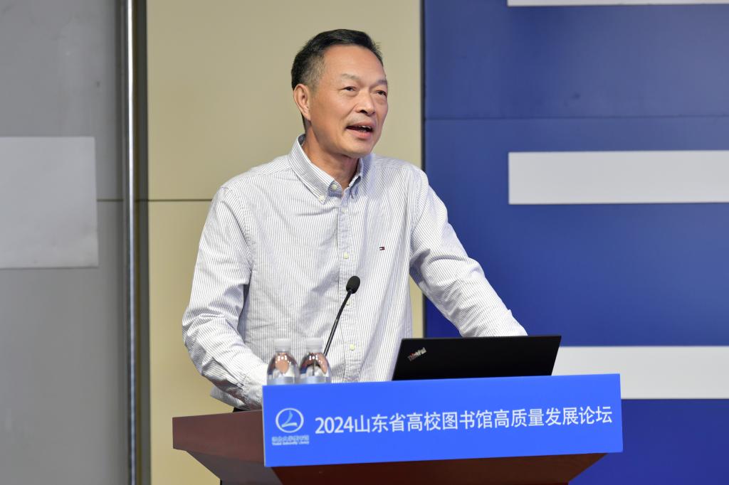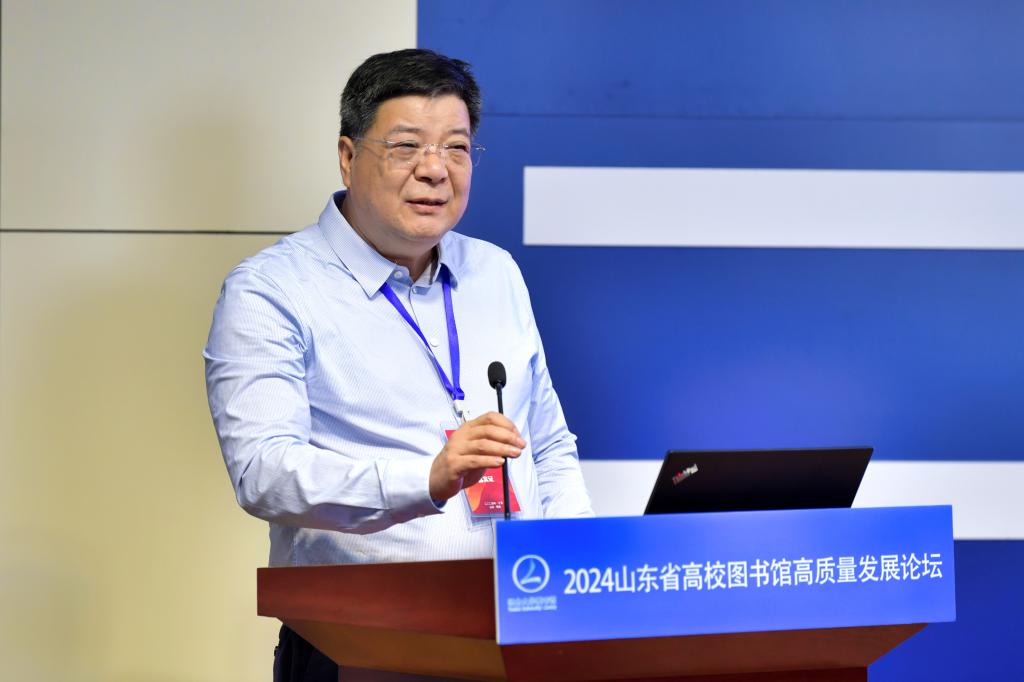 【本站讯】为推动新时代高校图书馆智慧化转型,加快新形势下高校图书馆的现代化建设与创新性发展,10月10日至12日,在sunbet申搏官方网站建校40周年、学校图书馆建馆40周年之际,由山东省高等学校图书情报工作委员会主办、sunbet申搏官方网站图书馆承办、中国知网(山东)协办的2024山东省高校图书馆高质量发展论坛在sunbet申搏举办,sunbet申搏官方网站副校长王洪波,山东省高等学校图书情报工作委员会秘书长、山东大学图书馆馆长赵兴胜,中国知网中部区图书馆行业总监罗慧出席论坛开幕式并致辞。开幕式由sunbet申搏官方网站图书馆馆长任汇江主持,来自省内各地的100余名代表参加会议。