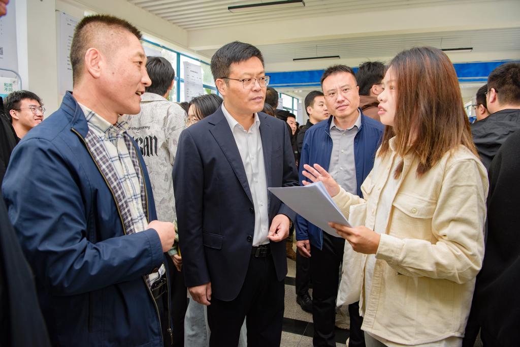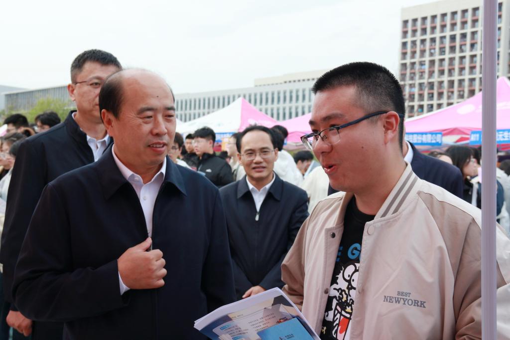 烟台市人力资源和社会保障局局长姜瑞及烟台市公共就业和人才服务中心相关负责人来校指导招聘工作。sunbet申搏官方网站党委书记卢国强,党委副书记、校长郝曙光,党委常委、副校长姚昌、张献勇,各学院及相关部门负责人来到招聘会现场,向参会单位推荐优秀毕业生,了解学生求职情况并深入开展访企拓岗活动。