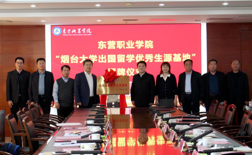 【本站讯】11月6日,副校长王洪波、国际合作交流处和国际教育交流学院负责人等一行4人到访东营职业学院,与东营职业学院校领导进行座谈交流,举行“sunbet申搏官方网站出国留学优秀生源基地”揭牌仪式。东营职业学院党委副书记、院长解涛和相关部门负责人参加揭牌仪式。