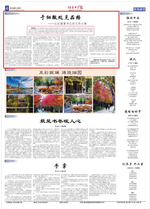 第697期《sunbet申搏官方网站报》“烟园清风”专栏刊登了《于细微处见品格——记杜建寰书记的几件小事》,现将原文转载如下: