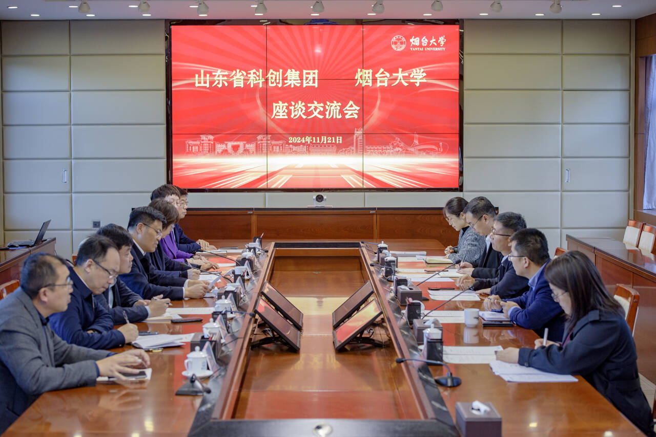 【本站讯】11月21日下午,山东省科创集团有限公司党委副书记、总经理王建新一行来校交流访问,学校党委书记卢国强会见客人,并就全面深化新形势下校企双方合作交流进行深入座谈。山东省科创集团总经理助理梁博,山东省科创集团科技成果转化中心、山东山科知识产权运营中心有限公司负责人,学校党委常委、副校长王丽和党委(学校)办公室、科技处、发展规划与学科建设处、合作发展处、知识产权研究中心主要负责人参加。