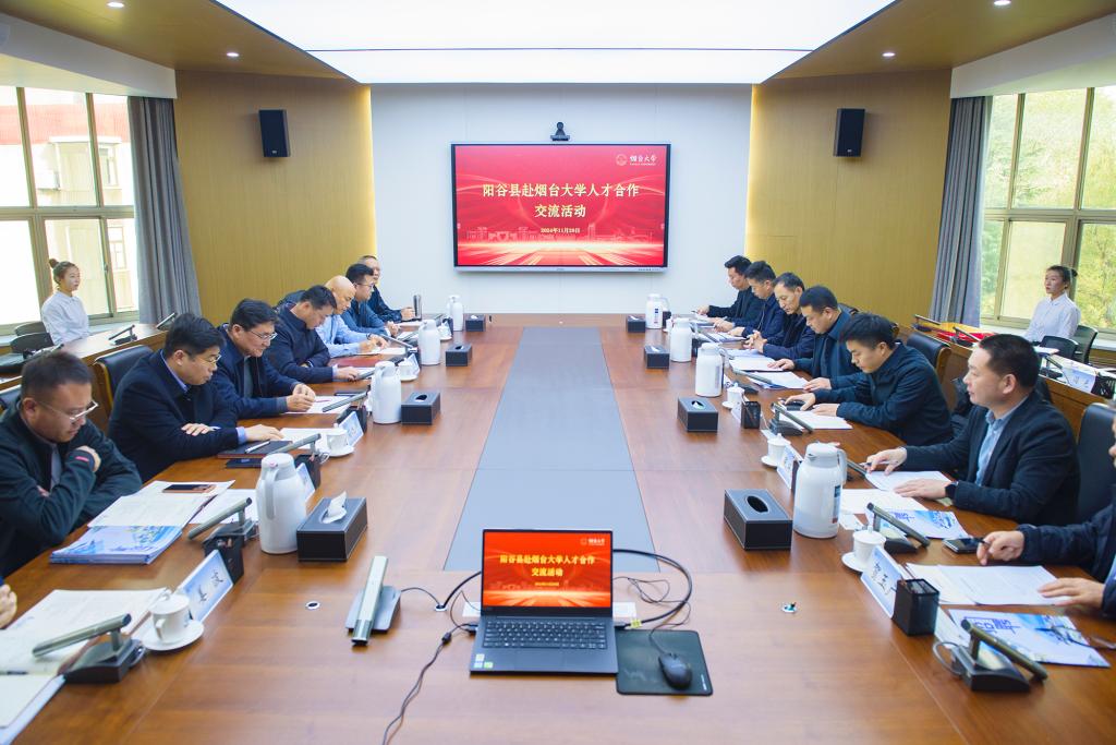 白青对陈炳山一行表示热烈欢迎,简要介绍了学校的发展历程、办学特色以及近年来在人才培养、科研创新和服务地方等方面取得的成就,希望与阳谷县进一步加强沟通交流,在人才培养、成果转化、产业合作等多个领域打造校地合作新典范。