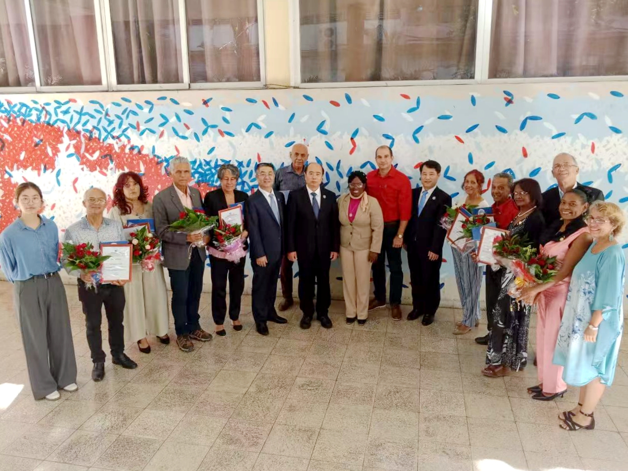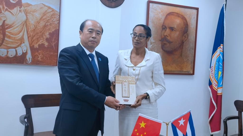 在古巴圣地亚哥,郝曙光等与东方大学校长戴安娜·塞达尔·亚内斯、副校长约安德拉·塞曼纳特·奥尔蒂斯、副校长埃尔西·玛丽亚·洛佩斯·阿里亚斯等举行座谈。郝曙光表示,希望双方持续强化交流互动,在孔子学院、学生交流、师生互动等领域加强合作,发展成为高度互信的国际合作伙伴。戴安娜在致辞时表示,希望与sunbet申搏官方网站不断拓展合作,加强各领域交流,争取获批孔子学院。会议期间,双方深入讨论共建孔子学院的各项事宜,包括各自权责、办学场所、教师选派、硬件设施、培训对象等,审议并签署了正式申办报告。代表团还受邀参加了东方大学杰出教授荣誉授予仪式。