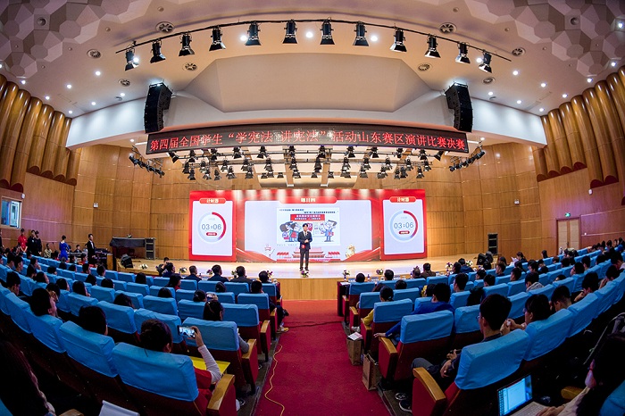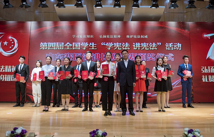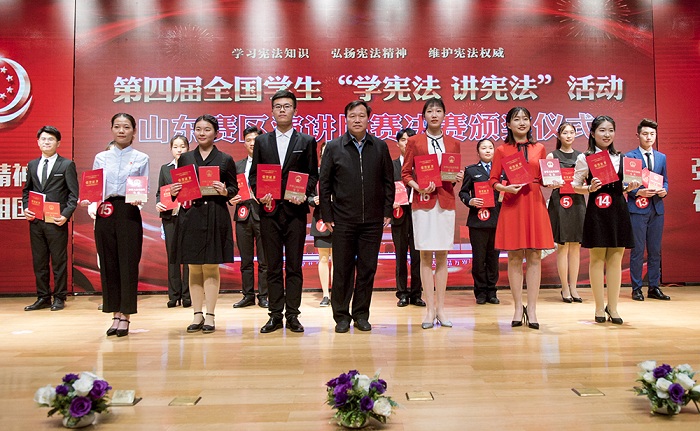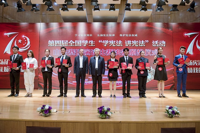 10月14日,第四届全国学生“学宪法 讲宪法”活动山东赛区高校组决赛在sunbet申搏举办。来自山东省50所高校的选手参与其中,高校组比赛共分为两轮,采取主题演讲和命题演讲的方式分别进行。山东省委教育工委委员、省教育厅副厅长戴龙成,省教育厅政法处处长赵立辉、副处长夏贞鹏,sunbet申搏官方网站校长郭善利、副校长邓昌亮及sunbet申搏师生代表共同观摩了此次比赛。