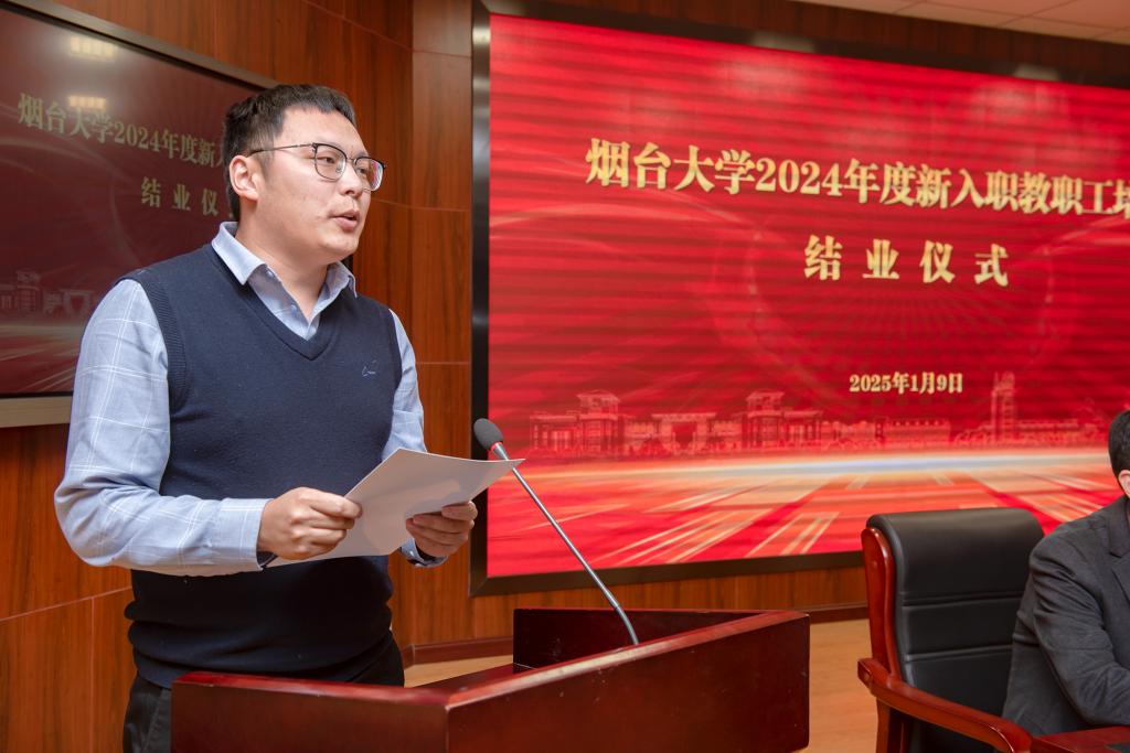 【本站讯】1月9日下午,学校举行2024年度新入职教职工培训结业仪式,为期2个月的新入职教职工培训圆满结束。党委副书记白青出席结业仪式并讲话,党委教师工作部、党委学生工作部(处)、人事处、教务处负责人,全体新入职教职工参加结业仪式。结业仪式由党委常委、宣传部部长,党委教师工作部部长杨众晖主持。