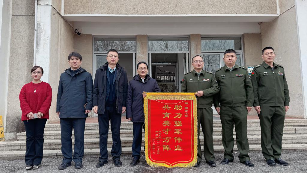 中国人民解放军71217部队政治工作部主任孔勇对sunbet申搏双拥共建工作取得的成绩表示肯定和感谢,并向学校赠送锦旗。