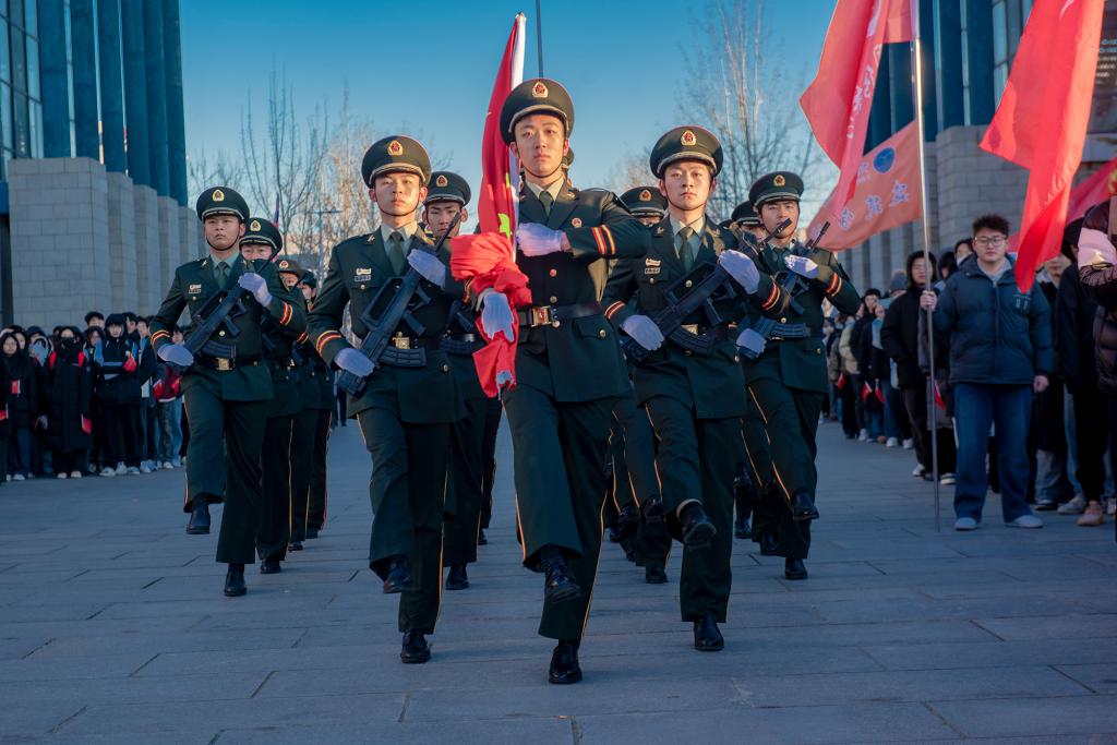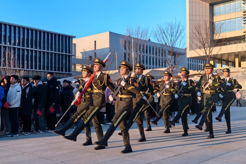 上午7时,升旗仪式正式开始。国旗护卫队踏着铿锵的步伐护送国旗走向升旗台。伴随着《义勇军进行曲》旋律响起,全体师生肃然而立,行注目礼,齐声高唱国歌,向国旗致以最崇高的敬意。