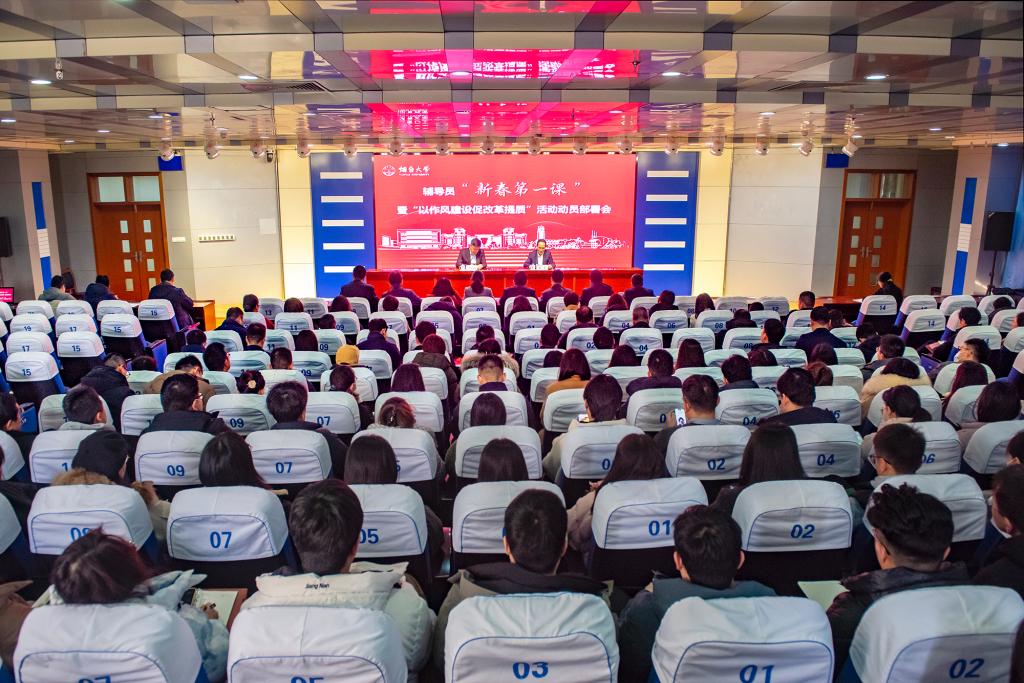 【本站讯】春光为序书壮志,砥砺奋进启新程。为深入学习贯彻落实学校2025年工作研讨会精神,落实改革提质部署要求,全面加强辅导员队伍建设,推动学生工作高质量发展,2月28日,辅导员“新春第一课”暨“以作风建设促改革提质”活动动员部署会在逸夫厅召开。党委书记卢国强出席会议并为全体辅导员讲授“新春第一课”,党委常委、副校长姚昌主持会议。