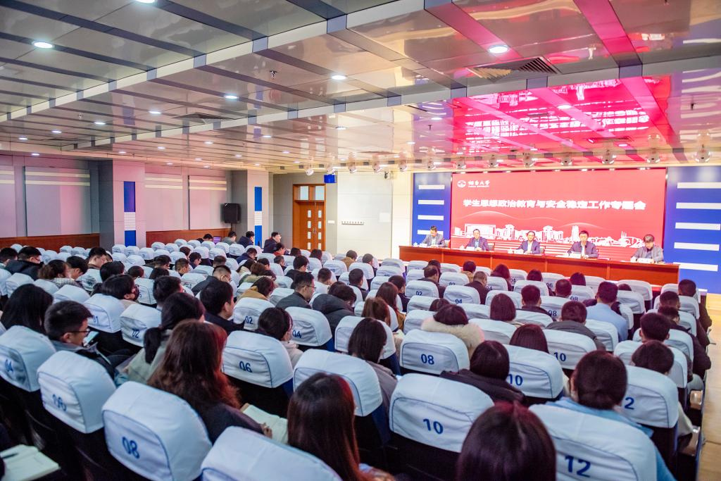 会上,党委学工部、党委保卫部、校团委、网络安全与信息化中心主要负责人结合部门职责和学生工作实际,分别就2025年学生思想政治教育、学生安全、共青团、网络安全等工作进行安排部署。各学院副书记、全体辅导员参加会议。