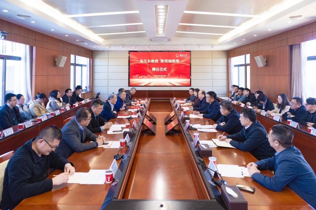 卢国强在致辞中对吴汉东教授、郭明瑞教授表示热烈欢迎,对两位教授的学术成就给予高度评价。卢国强指出,当前学校发展进入重要战略机遇期,更是砥砺奋进、全力冲击高水平大学的关键时期。此次特聘吴汉东教授、郭明瑞教授,是深入贯彻落实学校第五次党代会精神、推进“双高”建设的具体举措,也是学校落实立德树人根本任务、强化学科核心竞争力的实际行动。卢国强表示,两位教授的学术造诣和丰富经验,将有力推动法学一级学科博士点建设迈上新台阶,打造学科发展新格局。卢国强寄语青年师生,要以两位教授为榜样和标杆,做明德崇法的践行者、守正创新的开拓者和兼济天下的奉献者,将个人理想融入法治中国建设新征程。