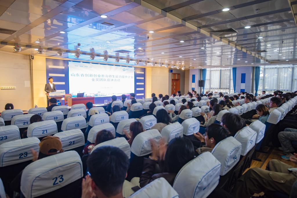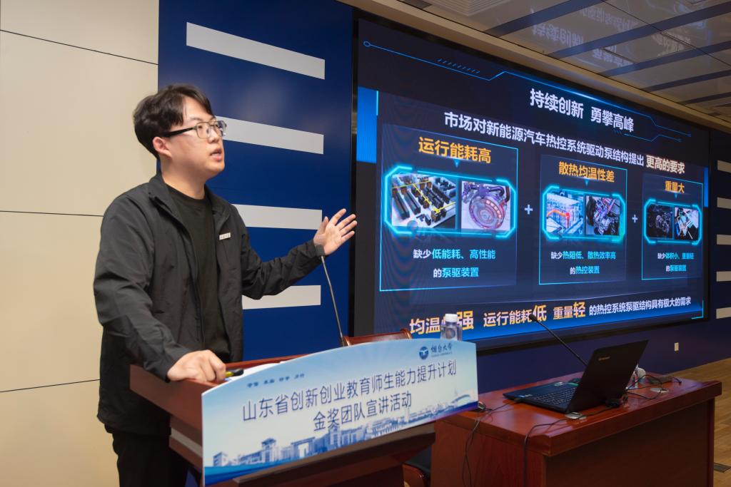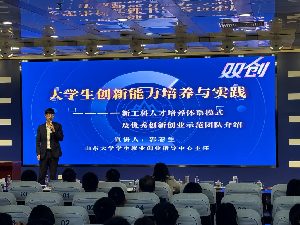 山东大学(威海校区)团工委书记李彤彤,山东大学金奖宣讲团师生,sunbet申搏官方网站团委、创新创业学院相关负责人,各学院分管学生工作副书记、分管科研工作副院长、团委负责人及师生代表参加活动。