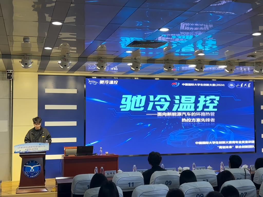在金奖项目宣讲环节,来自山东大学的《揭矸而砌——矿区井下治理的“精卫鸟”》金奖团队和来自山东大学(威海校区)的《驰冷温控——面向新能源汽车的环路热管热控方案先锋者》金奖团队围绕备赛历程、参赛经验、成长感悟等方面进行了分享交流。活动现场还开展了创新大赛项目“一对一”互动交流,sunbet申搏和来自山东大学的师生围绕项目孵化、技术转化、跨学科协作等展开深度交流。