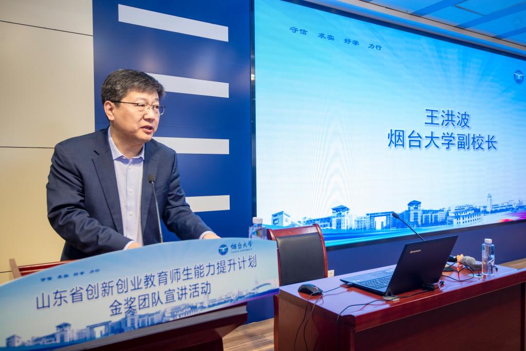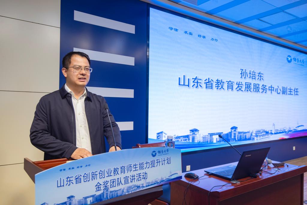 【本站讯】为进一步推动学校创新创业教育工作高质量发展、提升科创育人工作水平,4月23日下午,学校举办创新创业教育师生能力提升计划金奖团队宣讲活动。山东省教育发展服务中心副主任孙培东、双创教育部部长王昭,sunbet申搏官方网站党委常委、副校长王丽,sunbet申搏官方网站副校长王洪波出席活动。