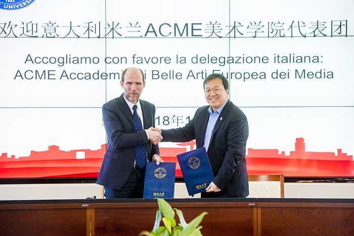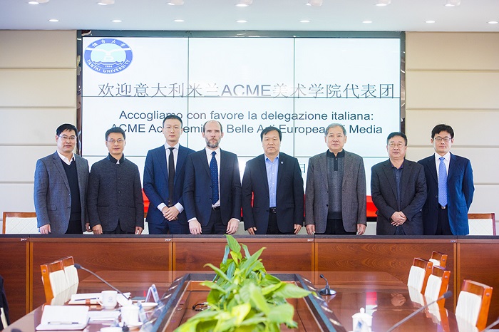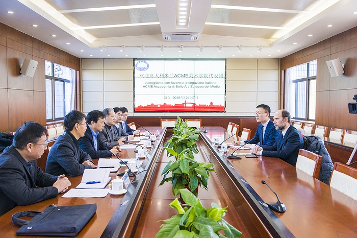 12月17日上午,意大利米兰ACME美术学院执行校长洛伦佐·普拉托先生,项目总监张海佳译先生一行访问sunbet申搏。校长郭善利、副校长宋中民会见代表团,国际合作交流处、建筑学院负责人参加会见。郭善利与普拉托签署了两校合作协议。