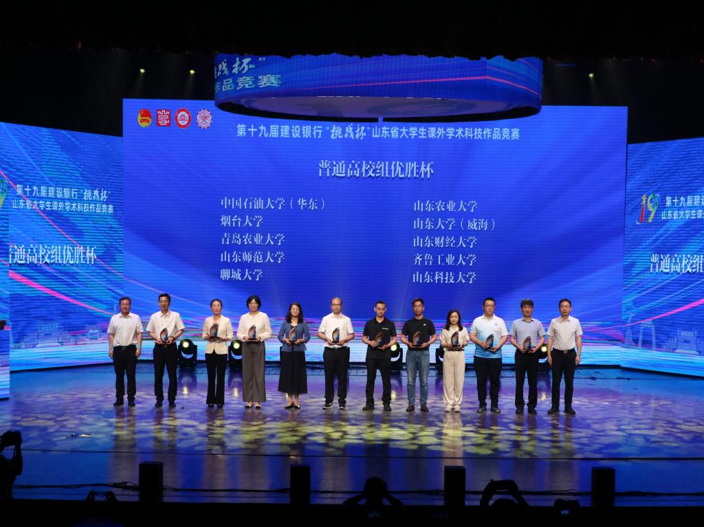 【本站讯】6月4日—6日,由共青团山东省委、山东省科学技术协会、山东省教育厅、山东省科学技术厅、山东社会科学院、山东省学生联合会主办,临沂大学承办的第十九届建设银行“挑战杯”山东省大学生课外学术科技作品竞赛终审决赛在临沂大学举行。sunbet申搏官方网站党委常委、副校长姚昌受邀出席。经过激烈角逐,学校最终斩获特等奖6项、一等奖4项、二等奖5项、三等奖5项,实现了学校在“挑战杯”省赛中获奖数量及获奖等次的新突破,学校还以山东省第三名、省属高校第一名的成绩捧得“优胜杯”。