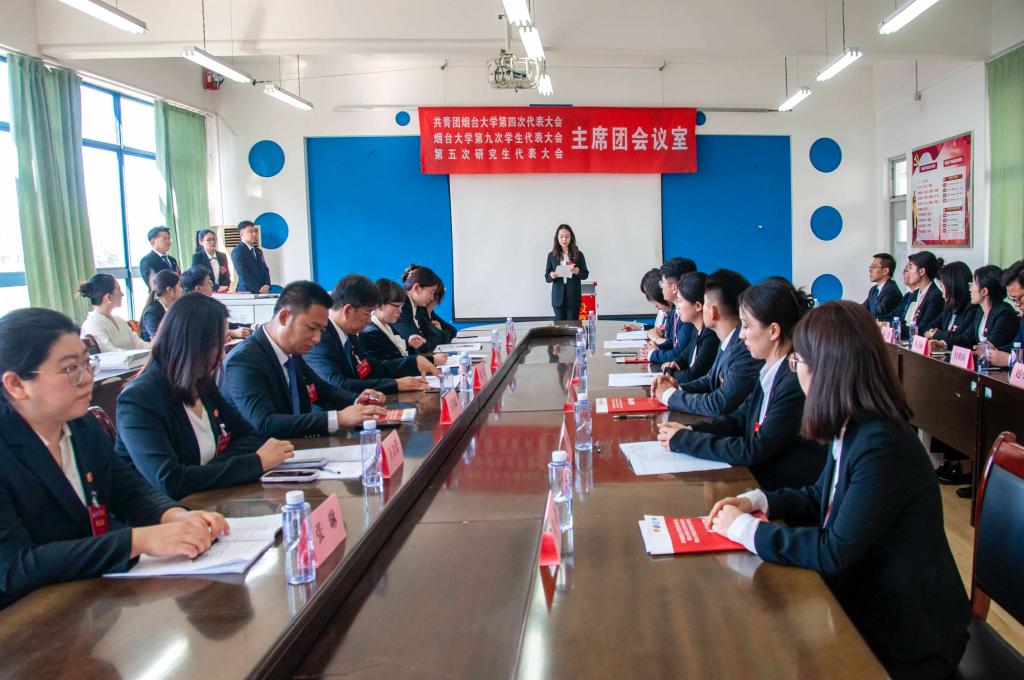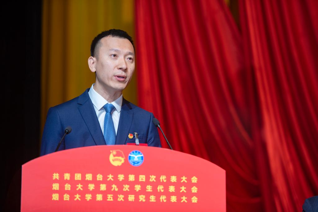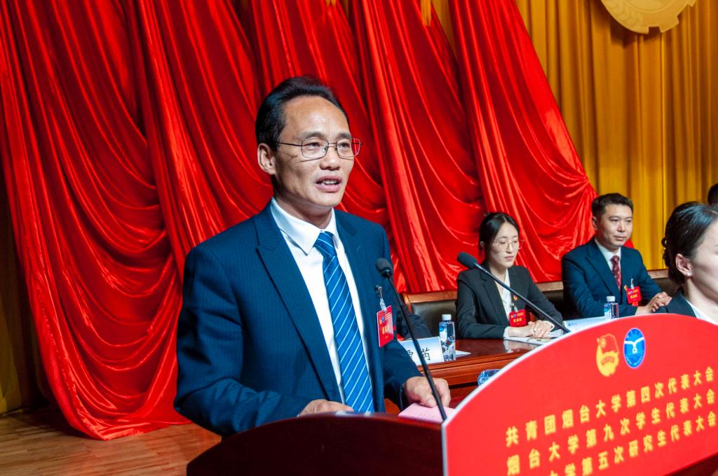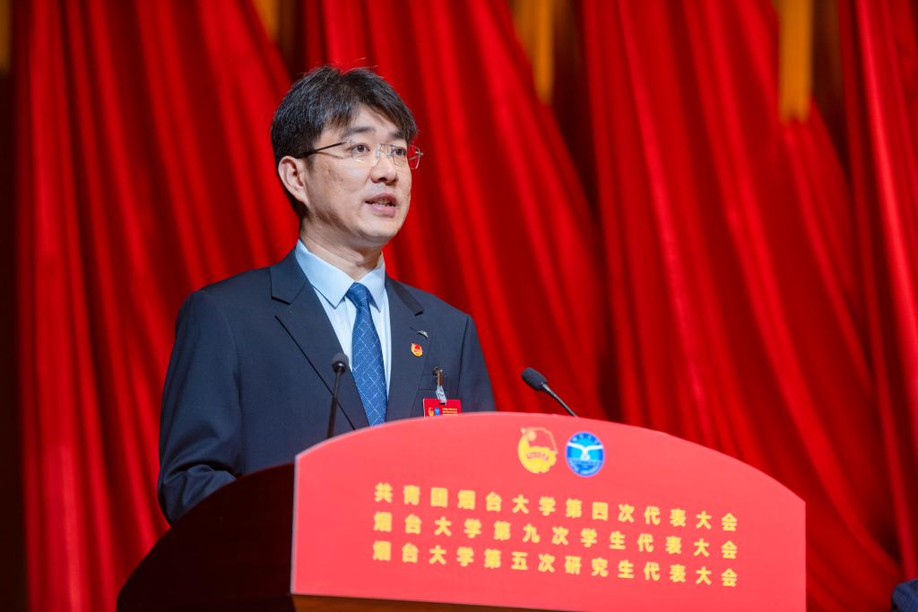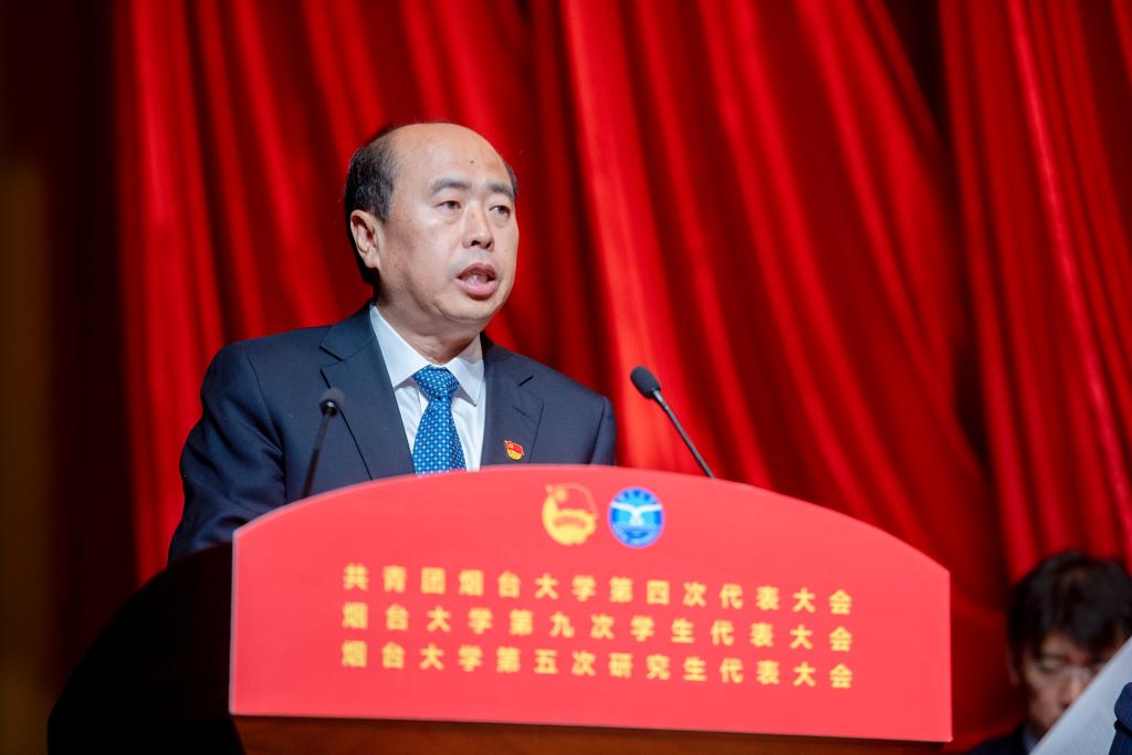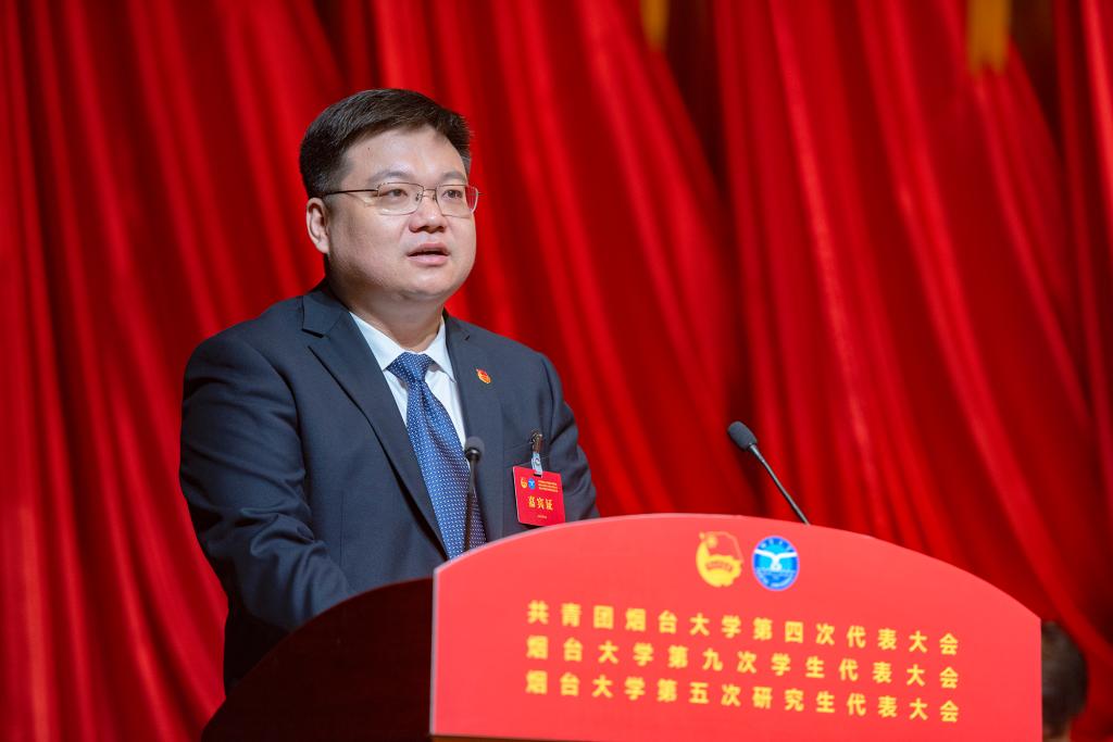 【本站讯】青春建功新时代,砥砺奋进新征程。6月12日,共青团sunbet申搏官方网站第四次代表大会、sunbet申搏官方网站第九次学生代表大会、sunbet申搏官方网站第五次研究生代表大会在弘毅厅召开。共青团山东省委副书记盛夏、共青团烟台市委书记张坤,山东大学团委书记范金林,驻烟高校团委书记代表,北京大学法学院研究生岳炜晔应邀出席开幕式。学校党委领导班子成员郝曙光、王强、白青、姚昌、杨玉军、杨众晖、毕朝辉出席会议。北京大学、清华大学、山东大学等省内外57所高校发来贺信贺电。