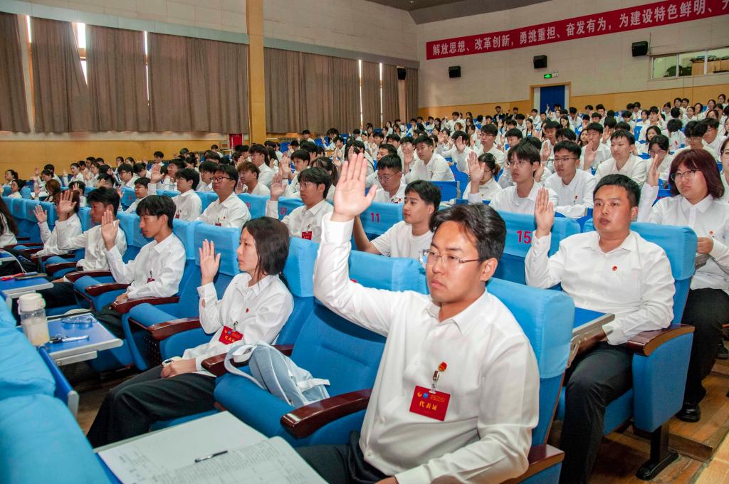 党委(学校)办公室、学生工作处、教务处、研究生处、校工会、校团委相关负责人,往届校团委书记代表,二级学院党组织书记及大会代表300余人参加会议。