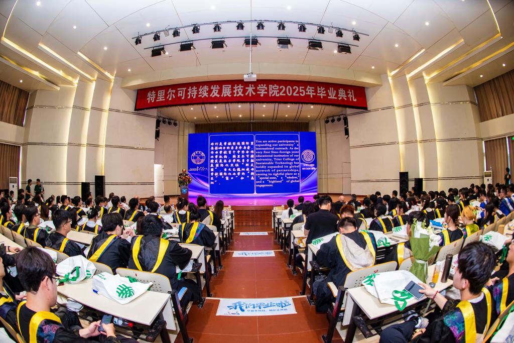 【本站讯】初心如磐行致远,云程发轫谱新篇。6月12日下午,特里尔可持续发展技术学院2025届毕业典礼在致道厅举行。党委副书记、校长郝曙光出席典礼并致辞,德国特里尔应用技术大学校长Dorit Schumann通过视频连线方式出席并致辞。党委常委、副校长冯素玲、姚昌,副校长王洪波,德国特里尔应用技术大学应用物质流管理研究院院长Peter Heck,sunbet申搏党委(学校)办公室、研究生处、学生工作处、环境材料与工程学院等单位负责人,两校教师代表,学生家长代表,学院全体教职工和2025届毕业生共同见证了这一重要时刻。典礼由冯素玲主持。