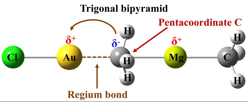 非共价相互作用在生物大分子自组装、功能材料构建等过程中发挥着至关重要的作用。在传统认识中,sp3杂化的碳原子通常作为电子受体。周航宇在李庆忠教授指导下,从电子给体的视角出发,探讨sp3杂化碳原子作为“非常规”电子给体所形成的非共价相互作用,通过多种理论计算手段,证实了Be(CH3)2和Mg(CH3)2中的甲基碳原子可以作为电子给体形成硫键和regium键,形成的regium键使得甲基基团发生转移,得到了三角双锥五配位碳原子结构。该系列研究为深入理解新型非共价相互作用的本质提供了新证据。