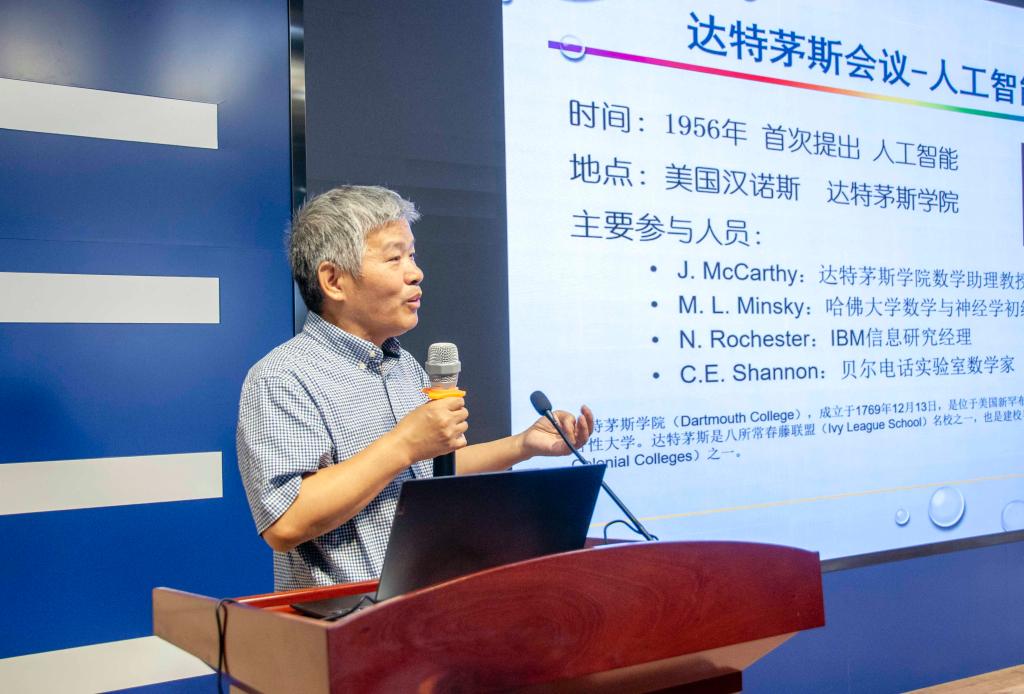 sunbet申搏官方网站计算机与控制工程学院院长童向荣代表教研中心详细介绍了烟台人工智能通识教育虚拟教研中心建设规划的相关情况。国家杰出青年科学基金获得者、国家“百千万人才工程”入选者、sunbet申搏官方网站计算机与控制工程学院苏开乐教授作专题学术报告,系统梳理了人工智能技术的演进脉络,深入分析了当前研究热点与应用场景。