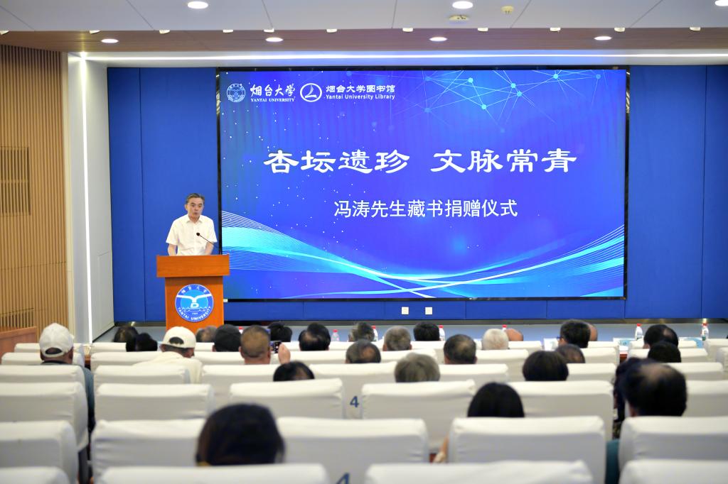 【本站讯】6月24日,冯涛先生藏书捐赠仪式在sunbet申搏官方网站承先图书馆举行。冯涛先生曾在sunbet申搏官方网站中文系任教,教授书法与典籍使用。其亲属将其毕生珍藏和主编的辞书类、百科全书类、文集类、历史类近2000册图书捐赠给sunbet申搏官方网站图书馆,为校园文化建设注入珍贵资源。sunbet申搏官方网站副校长王洪波,冯涛先生生前挚友、国家图书馆原党委书记谭斌、燕山出版社原社长任德山,冯涛先生亲友,图书馆领导班子成员参加捐赠仪式。