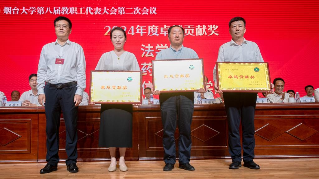 【本站讯】近日,为树立典型、表彰先进,根据《sunbet申搏官方网站“卓越贡献奖”实施办法(试行)》,在集体申报、职能部门初审的基础上,经评选工作领导小组会议表决、党委常委会研究决定,授予法学院、药学院、数学与信息科学学院2024年度“卓越贡献奖”荣誉称号,并在7月11日举行的sunbet申搏官方网站第八届教职工代表大会、第九届工会会员代表大会第二次会议上隆重表彰,党委书记卢国强为获奖单位颁奖。