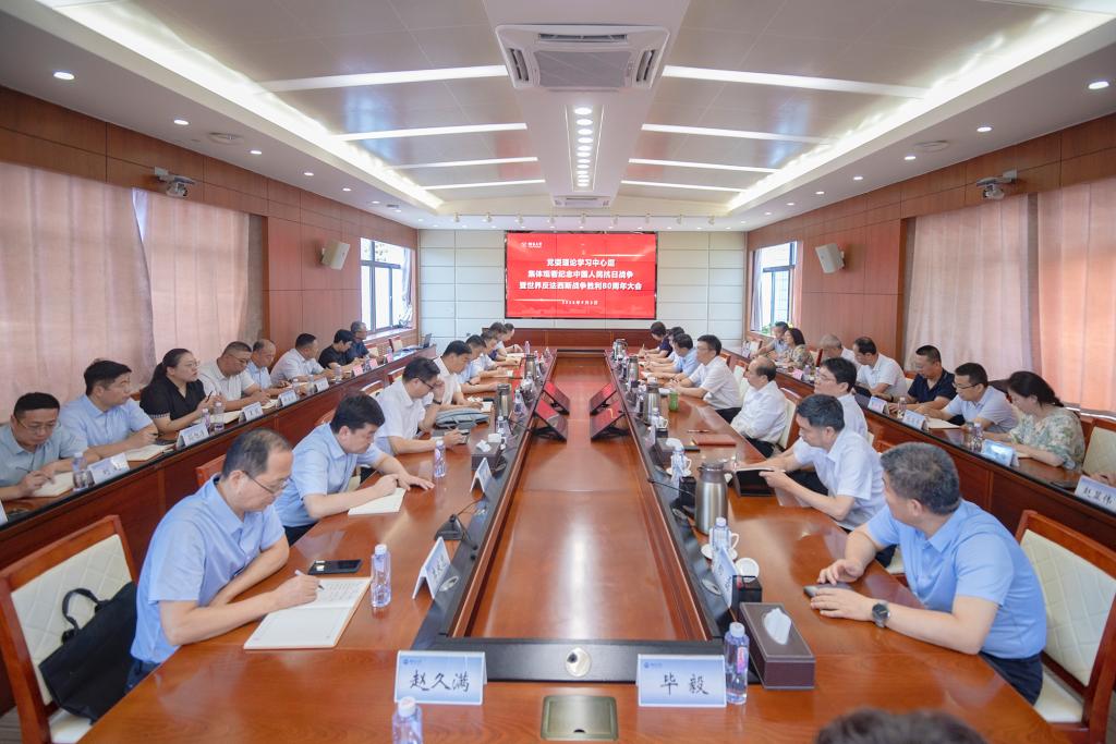 与会人员共同观看了纪念中国人民抗日战争暨世界反法西斯战争胜利80周年大会实况,教务处处长李庆忠、马克思主义学院院长王毅作了交流发言。