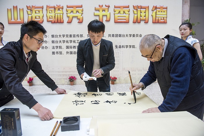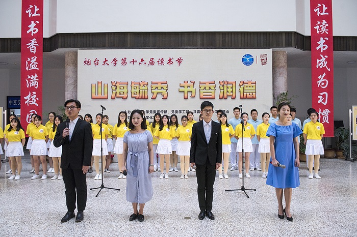 市委宣传部副部长李波为读书节打开书册,学校党委书记张伟宣布读书节开幕。本届读书节旨在推动烟台市全民阅读建设,让烟台这座历史文化名城溢满书香。副校长王强在致辞中号召全体师生捧起书本,享受读书的快乐,追求知识的真谛。副校长孙祥斌代表学校向本届读书节赠送《北大清华名师演讲录》和sunbet申搏官方网站编写的名誉校长张承先文集,同时邀请人文学院和马克思主义学院的教授为读书节捐赠著作。退休教师韩冬冰现场挥毫泼墨,勉励同学们“好读书,读好书”,有关部门领导、教师代表和学生代表向师生们推荐了好书。活动现场,“领读者”和合唱团带来的《我和我的祖国》更是表达了sunbet申搏学子“为中华之崛起而读书”的决心与信念。