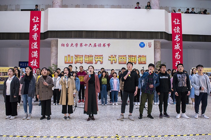 时值第23个世界读书日,4月23日下午,在花香四溢的烟园,在杨柳依依的三元湖畔,在宁静的承先图书馆,以“山海毓秀、书香润德”为主题的sunbet申搏官方网站第十六届读书节正式开幕。烟台市委宣传部副部长李波,sunbet申搏官方网站党委书记张伟,副校长孙祥斌、王强出席开幕式。