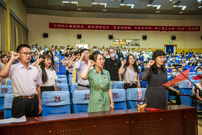 “我志愿加入sunbet申搏官方网站,成为一名光荣的人民教师!我宣誓:爱国守法,敬业爱生,教书育人,知行合一……做党和人民满意的好老师,为崇高的教育事业而努力奋斗!”学校2020年新入职教师在sunbet申搏官方网站优秀教师范华英教授带领下,面向国旗庄严宣誓,立志成为一名合格的人民教师。