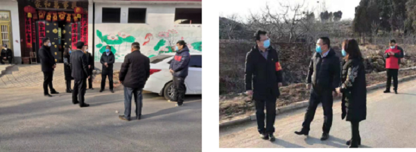 “严防重点对象,严控疫情来源。”“准确登记进出村信息、准确排查疫情信息。”在“第一书记”的例行网络视频碰头会上,他们根据各村的实际情况,研判疫情,研究对策,提出了“两严”“两准”的工作思路。在村里疫情防控工作一线,时时处处都有他们的身影。一方面,他们组织党员干部上一线、打头阵,设置党员“先锋岗”和“责任区”,对进村路口全部实行管控,党员干部24小时轮流值班,认真做好进出人员登记和体温检测工作,定期对村内的大街小巷和公共设施进行消毒,切实做到“一名党员一面旗帜”,充分发挥党员战斗堡垒作用和先锋模范作用;另一方面,带领广大党员群众做好疫情监测、排查、预警等工作,主动做好政策宣讲,消除群众恐惧心理,当好群众的“贴心人”和“主心骨”。