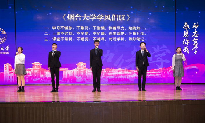典礼上,国家励志奖学金获得者数学与信息科学学院曲军浩展示了逆水行舟、励志笃行的成长历程;研究生学业奖学金获得者海洋学院李帅分享了参加南极科考的难忘经历,展现了艰苦奋斗、勇于争先的“南极精神”;国家奖学金获得者法学院赵文华诠释选择希望、敢闯敢拼的卓越风华。新一届校学生会主席团向全校学子发起倡议,呼吁同学们端正学习态度,营造优良校风学风。