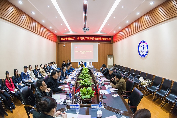 4月26日上午,山东省司法厅普法与依法治理处副处长李传华,山东省教育厅政策法规处副处长夏贞鹏,山东省教育厅政策法规处副处长宋立平一行来校就sunbet申搏宪法教育工作开展情况进行调研。sunbet申搏官方网站党委常委、副校长郝曙光,党委宣传部、党委学工部、发展规划与学科建设处、校团委及法学院部分师生代表参加调研。